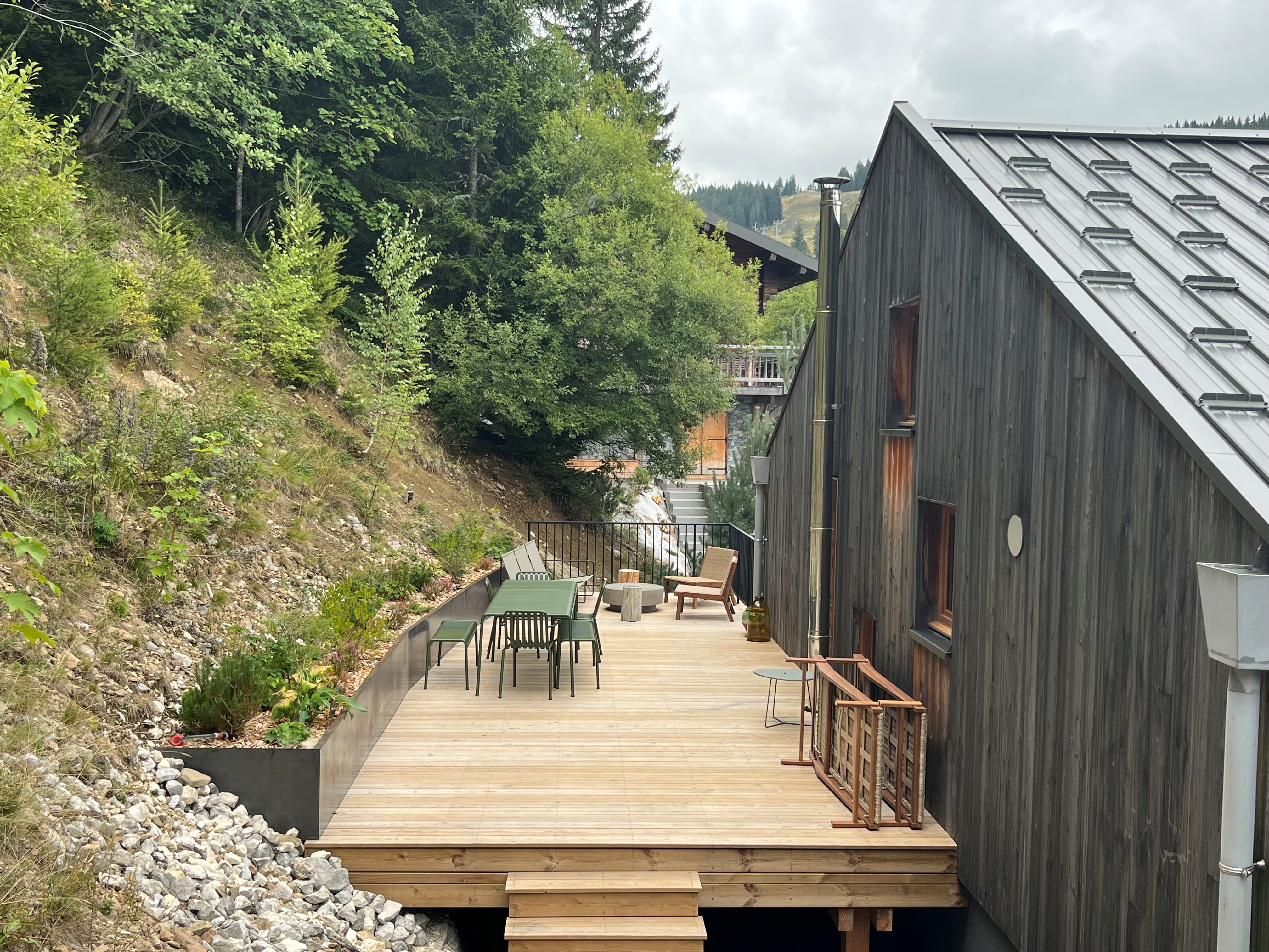 Réalisation d'une terrasse sur pilotis pour optimiser cet espace non utilisé.